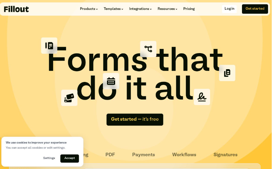 Fillout combines ease of use with advanced functionalities, making it a reliable choice for startups. It offers conditional logic and integrations with major platforms like Stripe and Zapier, allowing businesses to streamline data collection and payment processing.