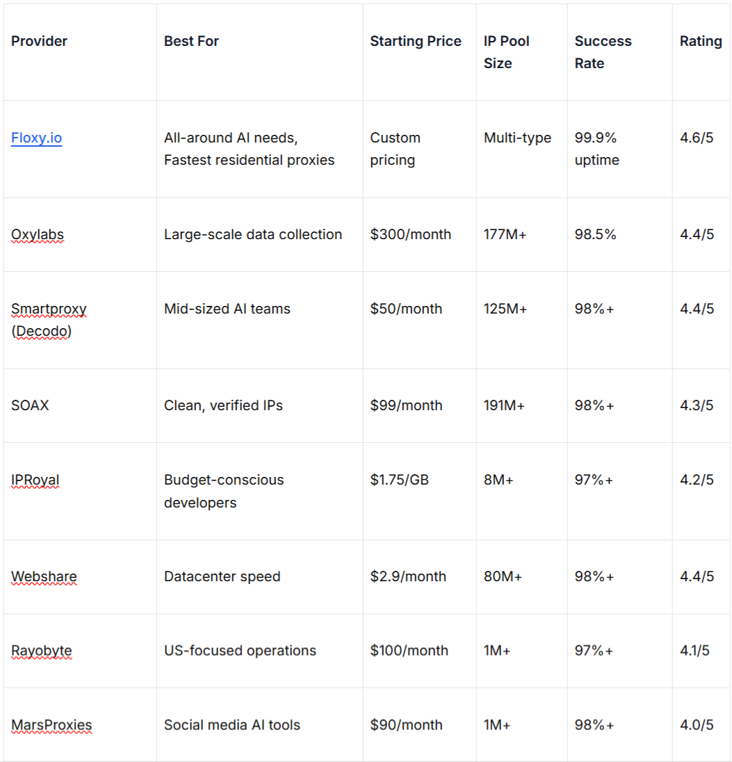 Quick Comparison: Top 8 Proxy Providers for AI Tools