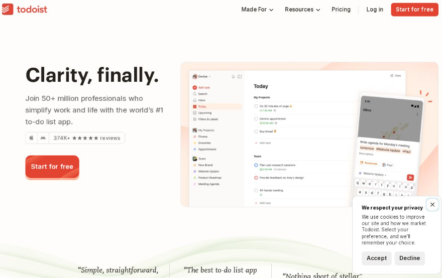 While it offers basic functionality for organizing tasks, its seamless integration with Microsoft's suite ensures that all your tools work harmoniously. For casual users who mainly need uncomplicated task management, Microsoft To Do is a solid choice.Pros & Cons: