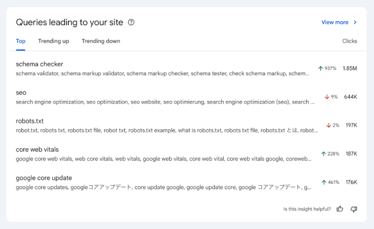 If you haven’t explored it yet, open your Search Console Insights and check the new “Queries leading to your site” card — you’ll probably see some surprising patterns.