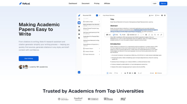 Koke AI is trusted by academics from top universities. It transforms writing from a tough chore into a smooth process. If you want to save time and write with confidence, try Koke AI’s AI Citation Generator and research assistant.